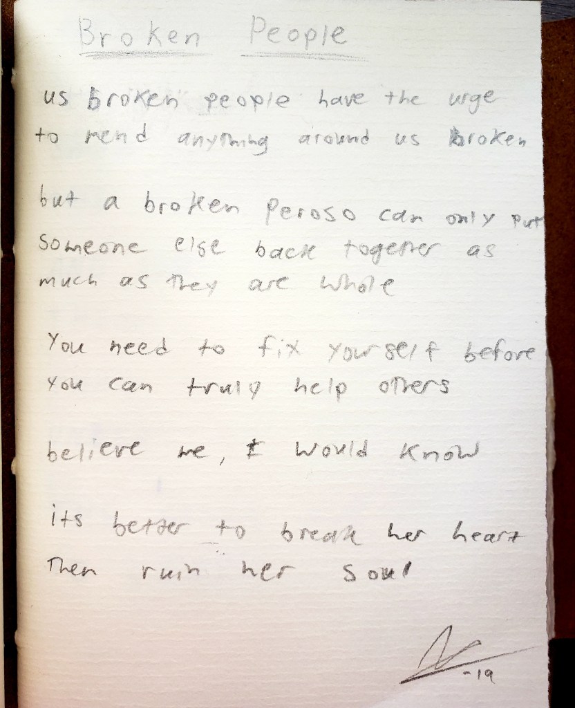 Us broken people have the urge to mend anything around us broken